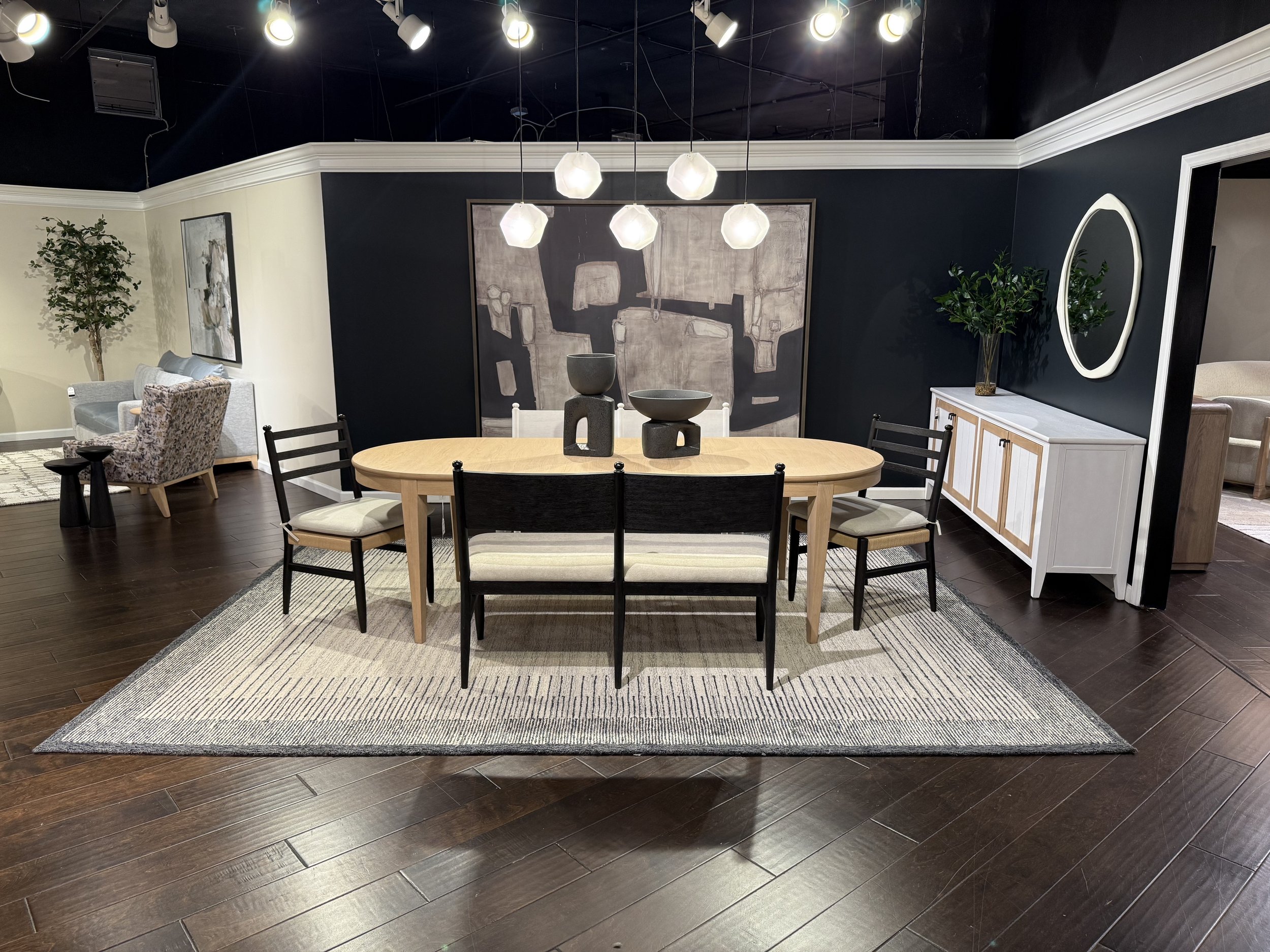 This ongoing work at High Point Furniture Market includes the design and remerchandising of approximately 50,000 square feet of showroom space for Bernards and Bauhaus. Each market required a complete showroom flip, with new layouts, vignettes, and accessory styling for every installation. For many markets, I led the project, overseeing full space planning, accessory procurement, and invoice tracking from start to finish.